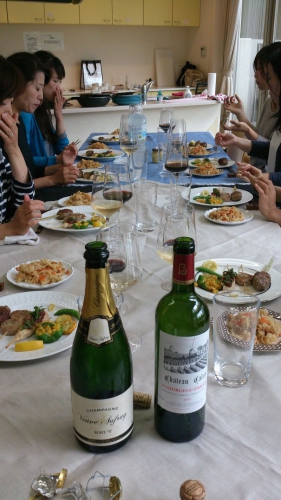 シュワシュワシャンパーニュ、お肉に合うボルドー赤ワインで室内ピクニックを楽しみました。
