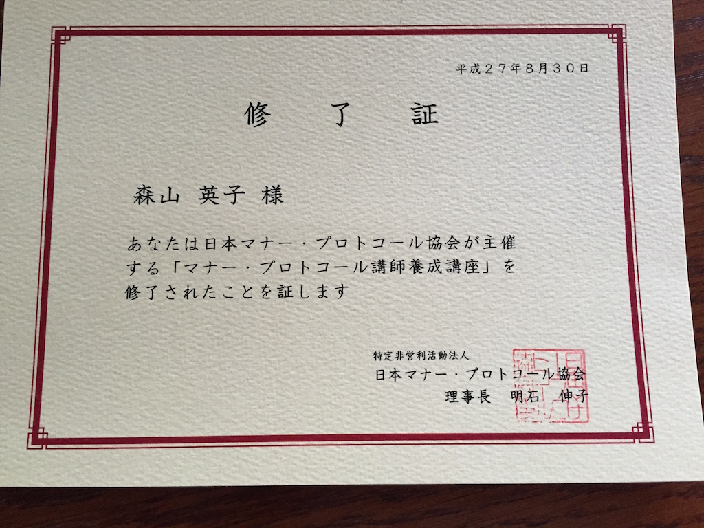 思い切って「マナー・プロトコール講師養成講座」に参加しました。