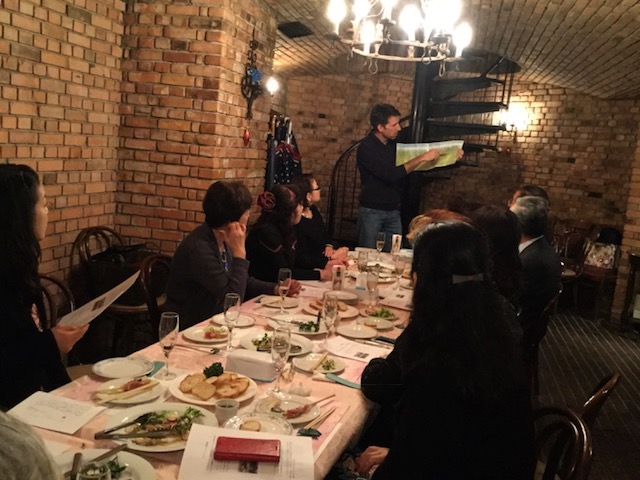 名古屋はイングリッシュパブのVIPルームにて、マチューさんも熱心にワイン説明。