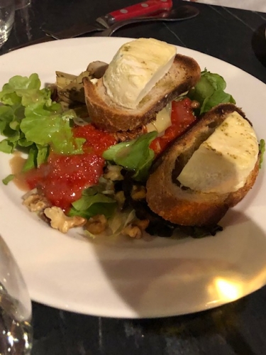 チーズたっぷりのサラダや、ムール貝、ステーキ、どれもニームの赤ワインと合わせると最高★