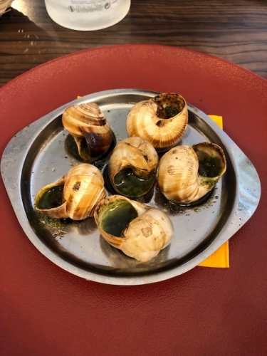 ブルゴーニュ地方のディジョンの街中、友人お薦めの名産エスカルゴ専門レストラン